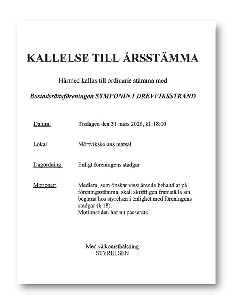 Brf Symfonin i Drevviksstrand har träffat avtal med Hyresgästföreningen om nya hyror för 2025 för våra hyresgäster.